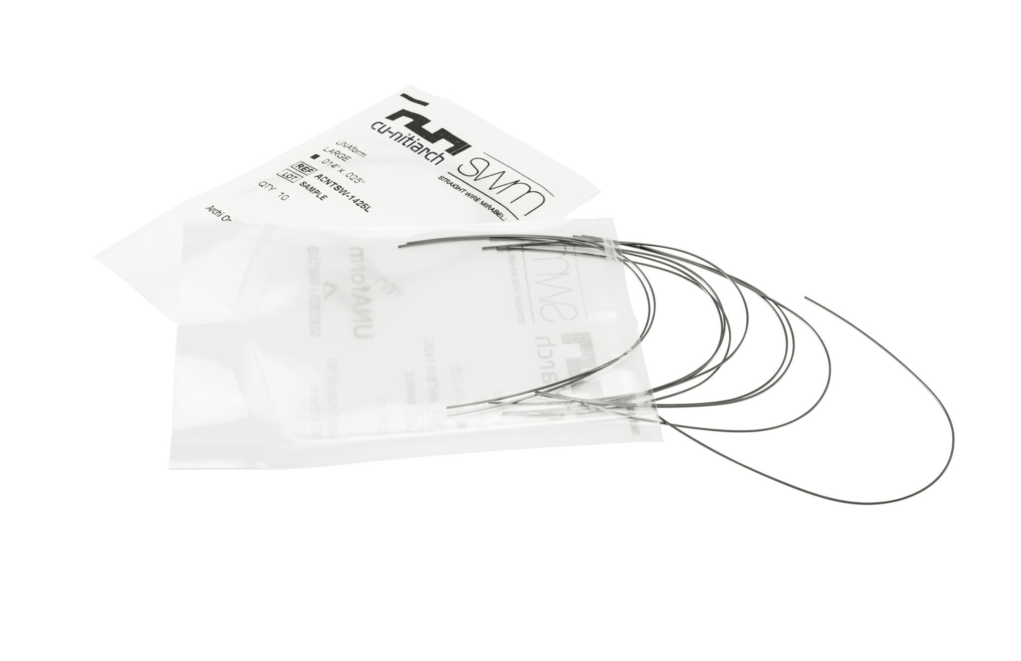 Gli archi UNAform in Nichel Titanio e Beta Titanio sono forniti in confezioni da 10 bustine singole, sigillate e autoclavabili, per la massima igiene e praticità clinica.