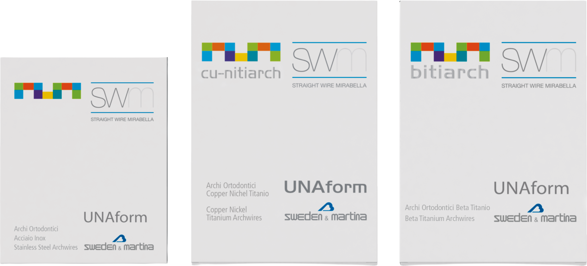 Gli archi UNAform sono disponibili in tre taglie – Small, Medium e Large – pensate per adattarsi in modo sinergico sia all’arcata superiore che a quella inferiore. Il loro design anatomico, sviluppato con estrema accuratezza, rappresenta uno degli strumenti fondamentali della Tecnica SWM, permettendo di ottenere risultati clinici eccellenti con semplicità ed efficacia.