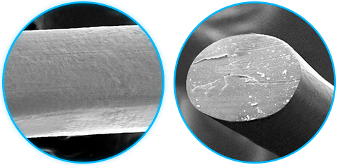 Foto al SEM del filo Monosoft, a destra la vista in sezione.