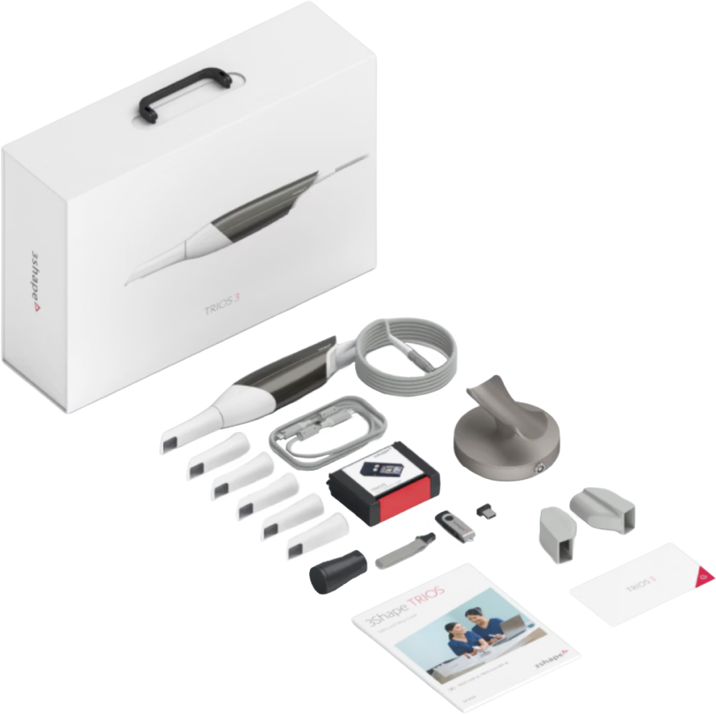 TRIOS 3 viene fornito con tutto il necessario per iniziare immediatamente a scansionare. Dallo scanner al computer preconfigurato, al pod migliorato e all’aiuto nell’onboarding.
